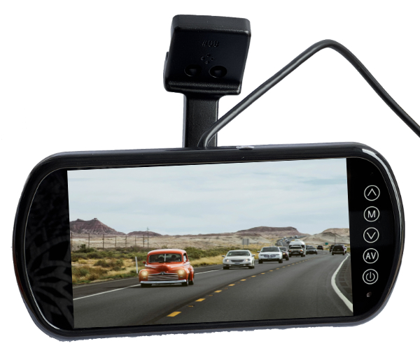 By mounting in the normal mirror location, where most drivers will glance to check rear traffic, this monitor becomes an eMirror, where a rear camera is streaming video constantly and can be almost the same as normal mirror vision (depending on the camera being used) and will feel completely natural to most drivers.